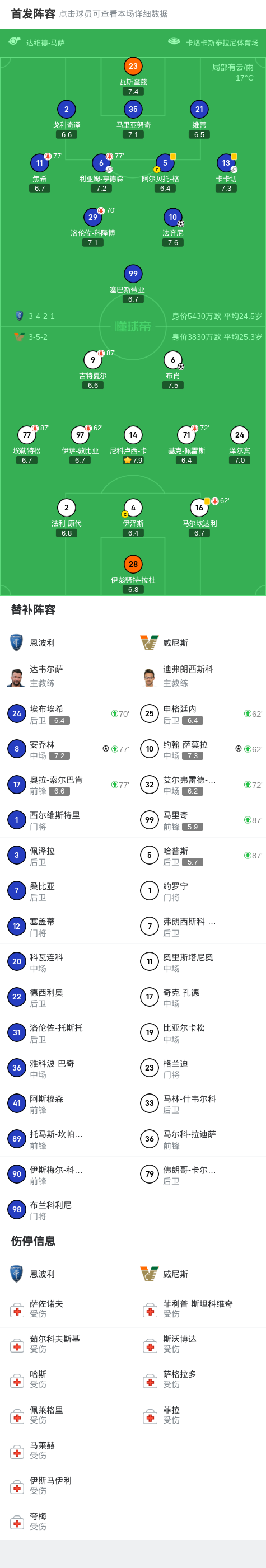 随着比赛的进行,威尼斯展现出了强大的反击能力。第67分钟,约翰-萨莫拉在一次快速反击中抢在恩波利防线未做好准备之际,冷静推射破门,将比分追平。威尼斯的进球让主场观众感受到了紧张和激动,比赛气氛达到了顶点。